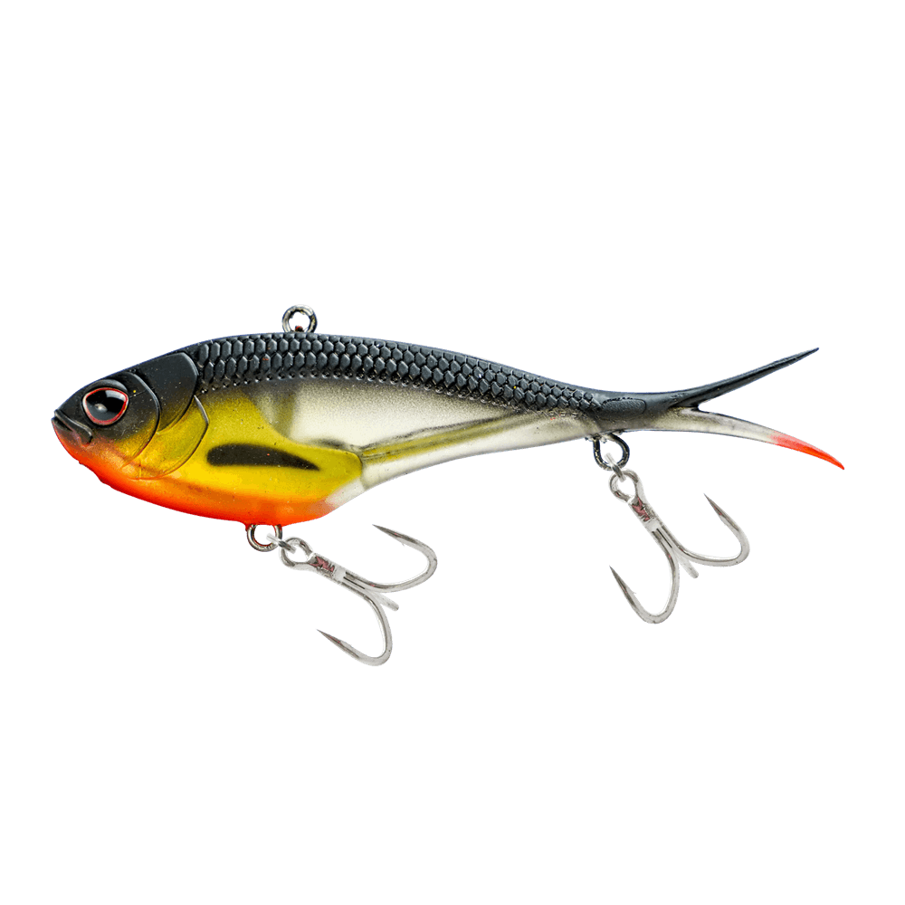 – Can be fished deeper than other vibes because of balanced design causing it to sink level and not spin when sinking. Gets down faster.